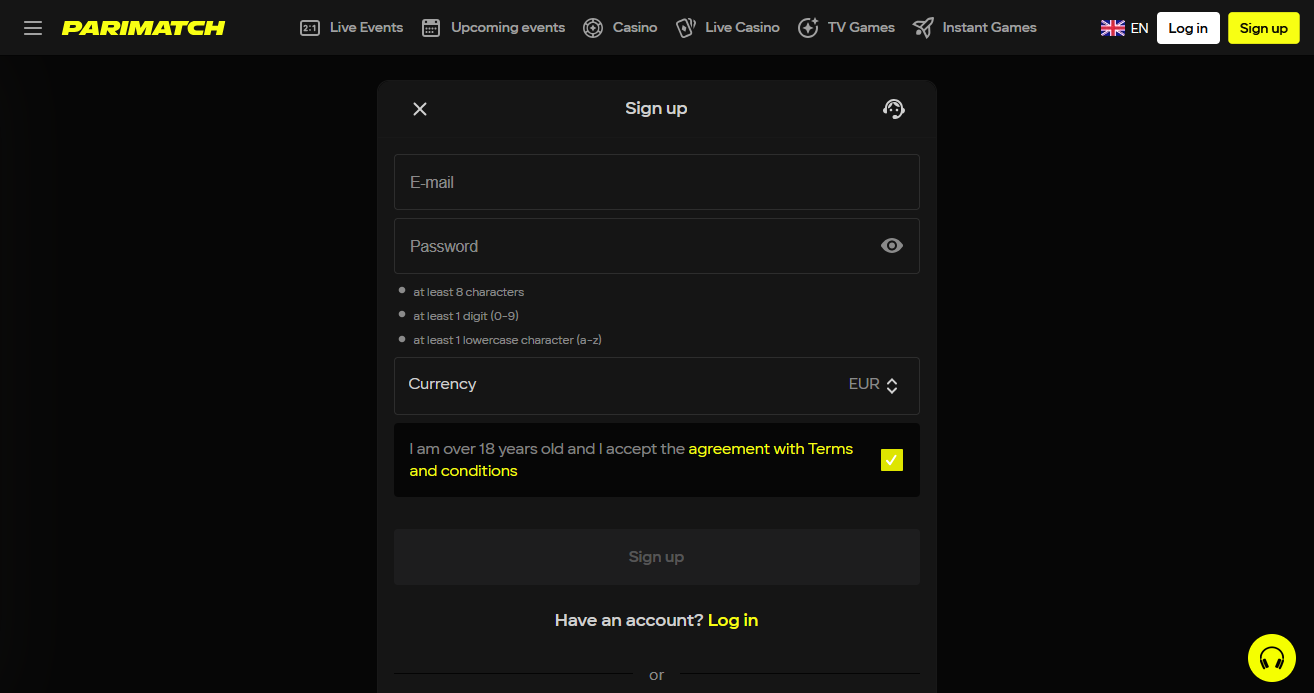 Registrace v Parimatch bez nutnosti složitostí a čekání